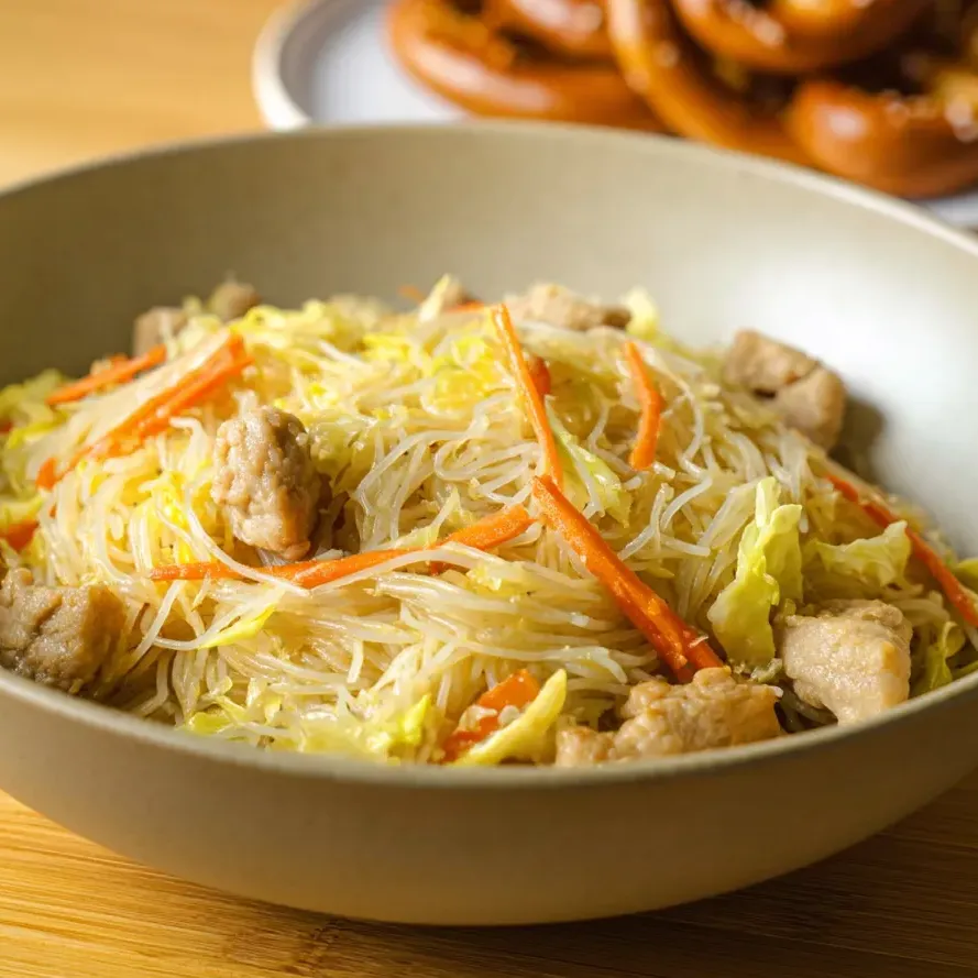 A traditional Filipino favorite with rice noodles, tasty meat, and a mix of colorful veggies tossed in soy sauce.